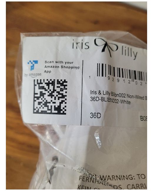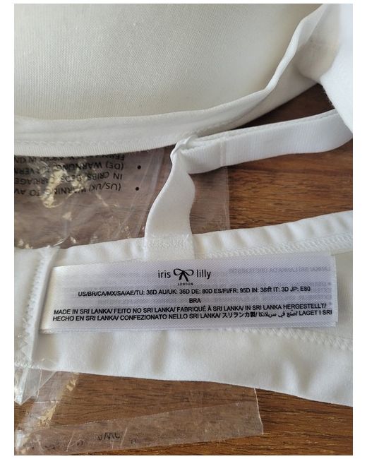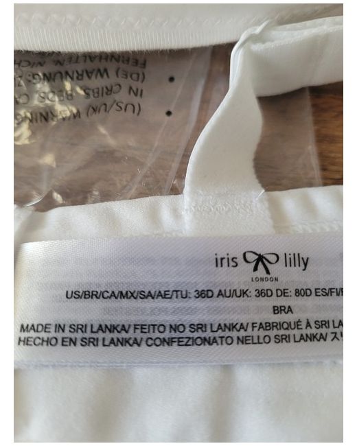 Iris And Lilly Women's Cotton Wireless Padded Bra In White Size 36D BNWT. Made from soft, breathable, hypoallergenic cotton designed for long-lasting comfort Features light padding without underwire to highlight the natural shape and provide comfort Adjustable shoulder straps can be altered for a customised fit