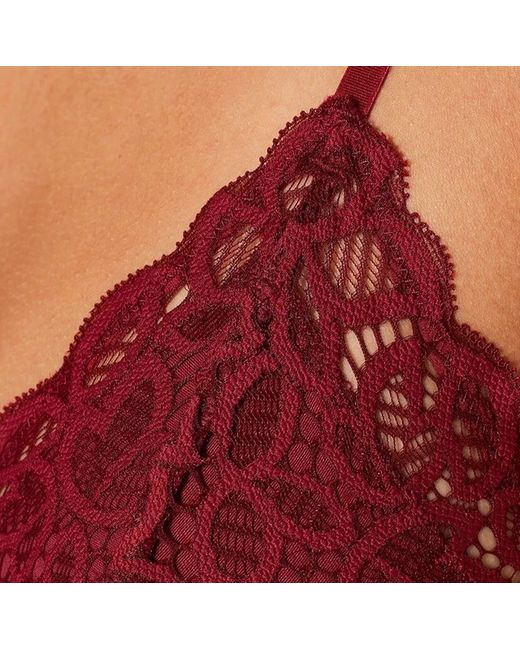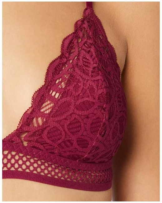 Iris & Lilly Women's Wireless Crochet Lace Triangle Bralette Red Size XS (8) Cut from sheer, stretch lace that sits softly against the skin Features an unlined, wire-free design with light support 92% Polyamide, 8% Elastane Fastening: Back closure BLICL1615 Adjustable shoulder straps Brand new