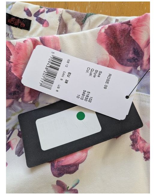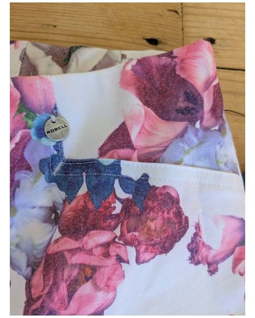 Women's Pink White Floral Print Rose 09 Stretch Pull On Trousers Pants UK 12 BNWT