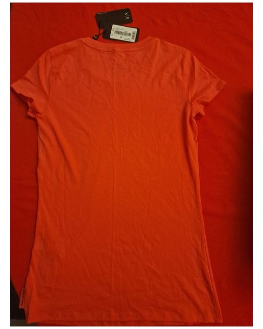 This Armani Exchange Women's T-Shirt is a coral-coloured top made from 100% cotton. It features a regular fit, short sleeves, and a round neckline, making it a versatile and comfortable wardrobe staple. The size of this T-shirt is Small, perfect for a snug yet relaxed fit on a stylish woman looking for a quality branded piece.
