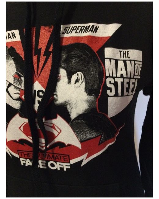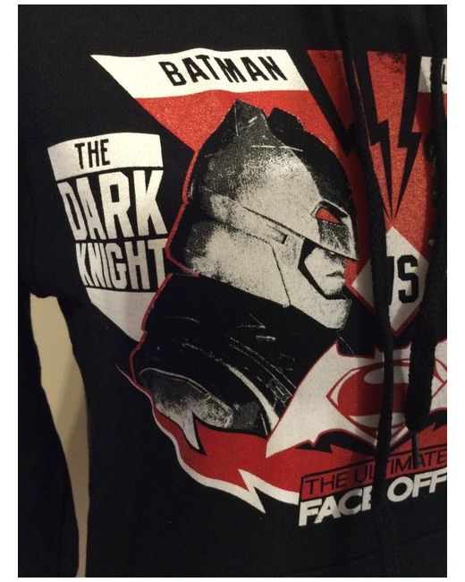 Batman, The Dark Night Vs Superman, The Man of Steel. Official DC Comics hoodie. 19” pit to pit. Available in a U.K. size XS. To fit chest up to 36”. The Ultimate Face Off. Kangaroo pocket to front. Batman-Superman decals to front.