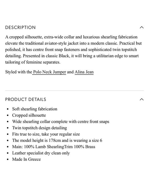 Presented in classic Black, it will bring a utilitarian edge to smart tailoring of feminine separates. Beautiful heavy weight shearling jacket, quality product. Stunning jacket. Made In Greece. Unwanted Christmas gift (I think I’m too old for it !).