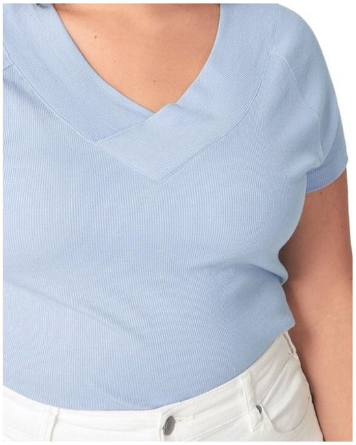 Ivory V-Neck Ribbed Jersey Tshirt Top Plus 20-34