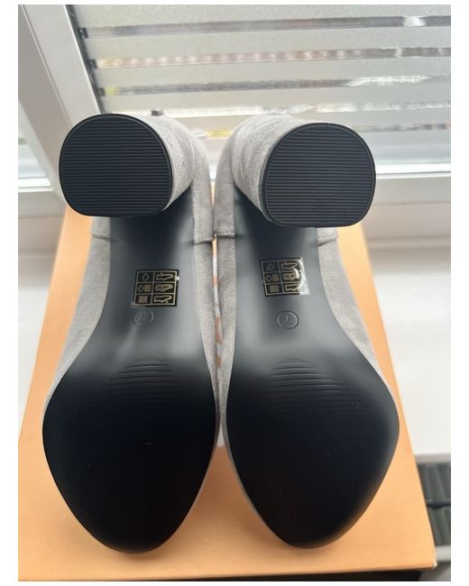 New with box grey Public Desire boots. Size 7. Material has lifted on one of the boot heels. Photo provided.