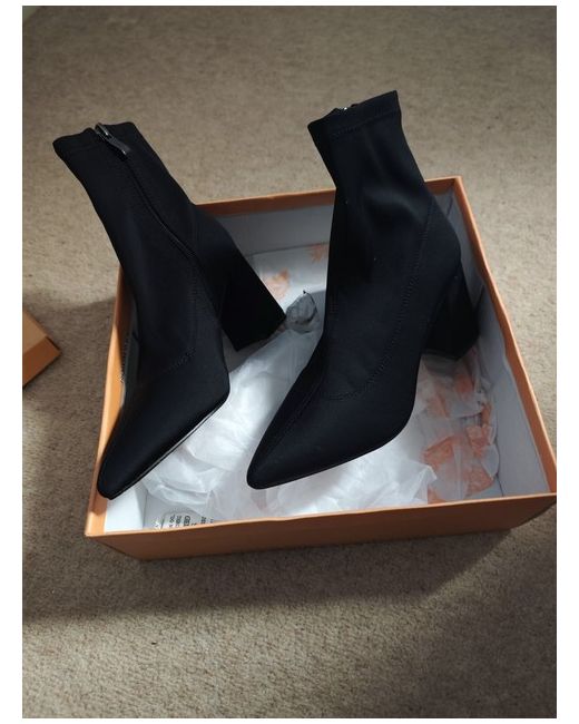 These ankle boots in size 4 by Public Desire feature a sleek sock style design in textil type synthetic black material. The boots have an ankle shaft style, making them a trendy and versatile addition to any woman's wardrobe. With a chic and modern look, these boots are perfect for various occasions and can be easily paired with different outfits for a stylish touch. Brand new with box, never worn, only tried on.