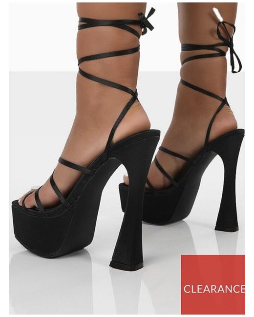 Public Desire Endless Potential Satin Platform Lace Up Heels - Black size 6.