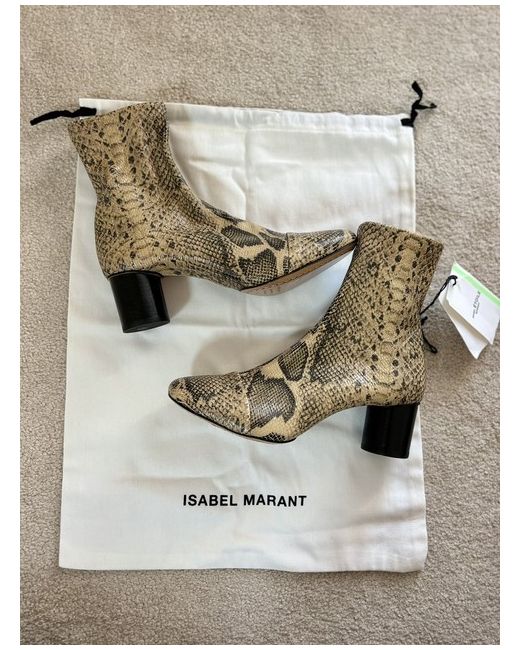 NEW ISABEL MARANT Datsy Snakeskin Python Printed Goat Leather Ankle Boots. Internal Sole 100% cowhide leather. Size 38 / 5. Lining 100% leather/ other materials. Sole 100% Cow leather. Shell 100% Goat leather.