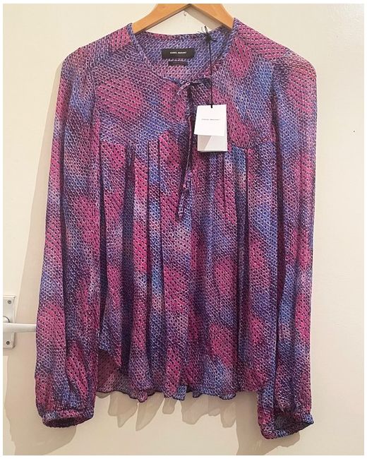 Made in 70's style, this top has beautiful fluffy sleeves and 3 points for ribbon knotting coming down from the collar.