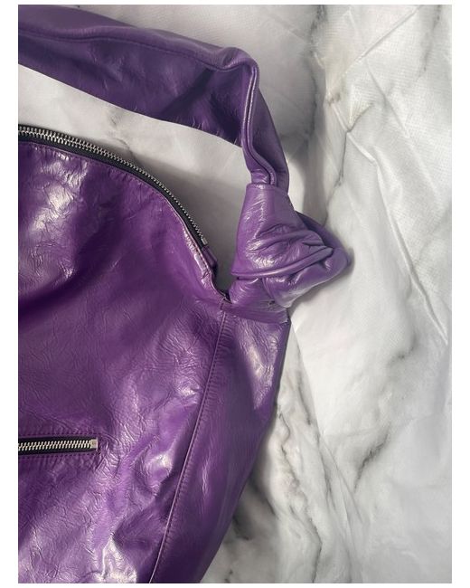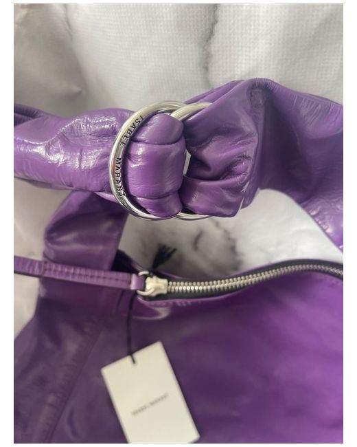 Isabel Marant large shoulder bag, approx 52cms x 44cms. Purple leather, slightly textured. Front zip pocket, two back pouches. Inner zip pocket 24cms. Silver hardware, purple leather zip pulls. Black lining.
