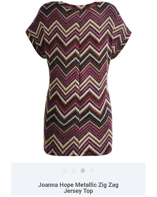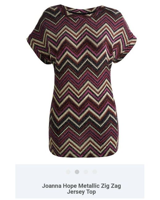 Joanna Hope Top Size 12. Condition is New with tags. This flattering and versatile tunic from Joanna Hope looks equally good with casual jeans and smart trousers, and can take you effortlessly from day to evening. The stretch fabric and longer hemline will flatter your figure while the short, grown-on sleeves with a cuff create a relaxed style. Adorned with an on-trend zip-zag print in complementary seasonal shades. Comes with a subtle sparkle in the knitted jacquard for a glamorous twist. Length 26in/66cm. Sits lower hip. Hand wash. 82% Polyamide, 12% Metallic Yarn, 6% Elastane. Product Code: SZ256