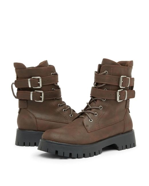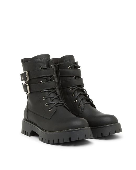 Bench Womens 'Tatton' Black & Brown 2 Strap Boot, All Size, Zip, Casual, Chunky.