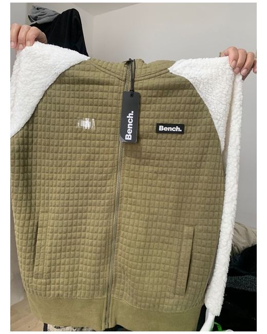 This stylish Bench hoodie is a must-have for any woman's activewear collection. The full-zip design and grey colour make it perfect for a range of occasions, while the wool fabric ensures both comfort and durability. Sized at medium, it's a great fit for women looking for a comfortable and fashionable hoodie for their workouts or casual wear. The hoodie is brand new and sold without tags. Get ready to elevate your style and stay comfortable with this Bench hoodie.
