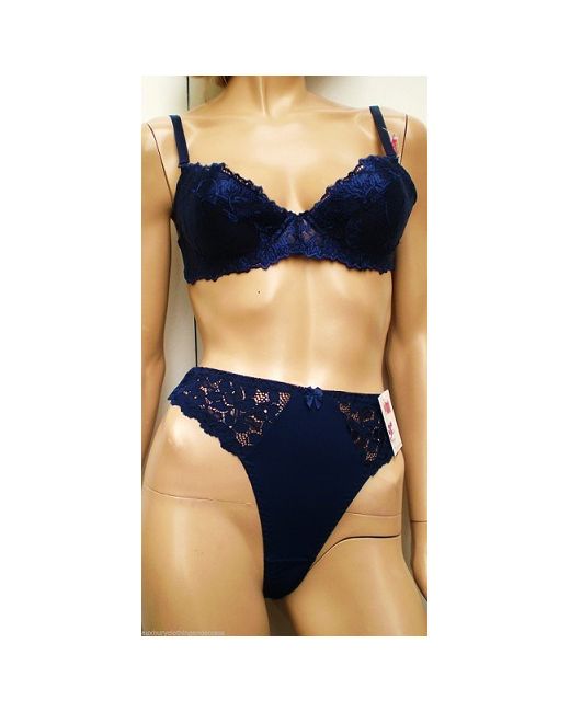 Navy under wired/Lined bra with thong set . Bra Sizes 32 Bra 34 36 Bra 38 bra. Beautiful and elegant design With stunning lace detail Thong with Navy Set. Mix & Match Your Thong Size.