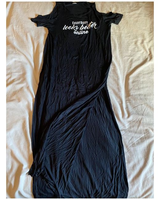 Women's Black OVS Maxi Side Cold Shoulder Top With Slogan. L. NWOT