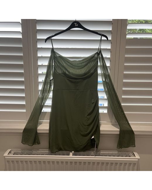 Add a touch of elegance to your wardrobe with this stunning green halter cut out dress from Split. It's a size L and suitable for regular size types.