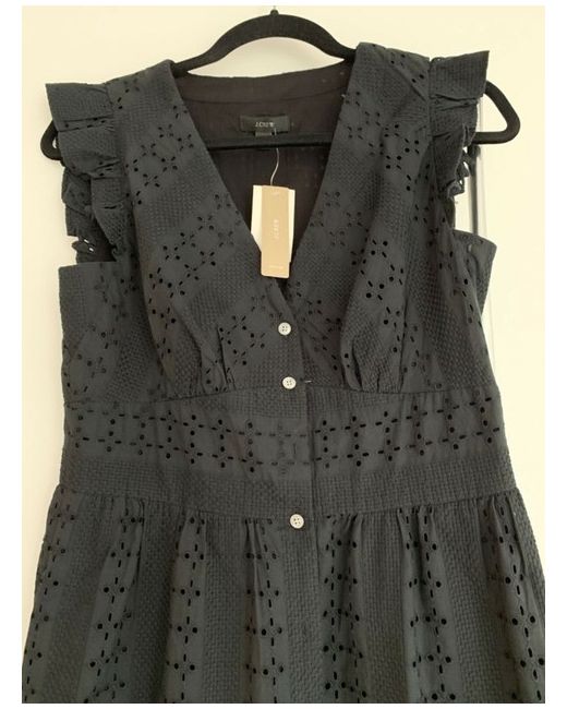 JCREW Size UK8 Classic Black button down dress midi length in broderie Anglaise Style. Waisted and fitted. Very flattering shape.