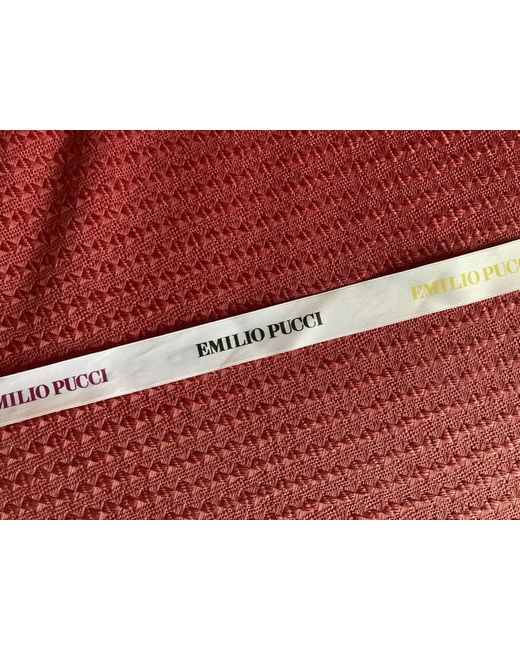 EMILIO PUCCI WHITE SATIN RIBBON. Can be worn as a hair ribbon or tied on a bag handle/key chain. 22 inches long/56cm 1 inch wide/1.5cm Emilio Pucci branding on each side: one side is purple, forest green and dark yellow, other side is canary yellow, baby blue and pink. Never used. From a pet & smoke free home.