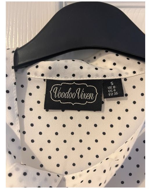 Women’s Voodoo Vixen Alex Blouse. Cream Polka Dot. Vintage 1940s style. Scoop neck with neck tie. Brand new, no tags. Worn to try on only. Size small/8