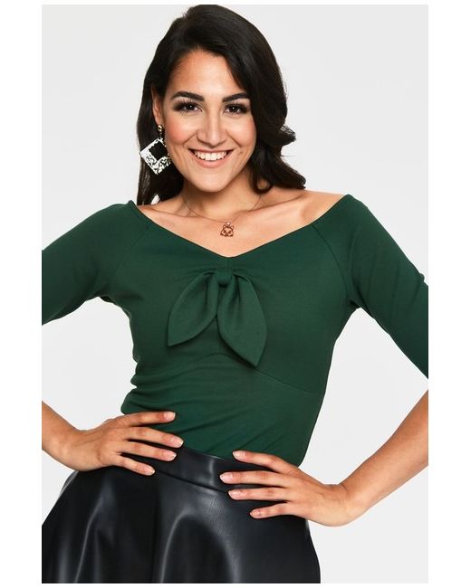 Style : Pullover top. Basic knit soft to touch blouse with V-neck and long tied bow on the front. Neckline : V-Neck. Colour : Green. INSIDE LEG. Sleeve Length : Short Sleeve. Waist Size (cm)63.5 68.5 74 79 84 89.