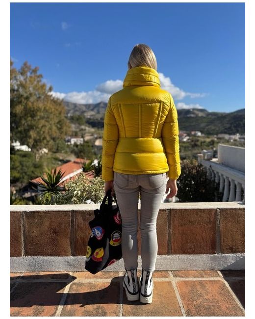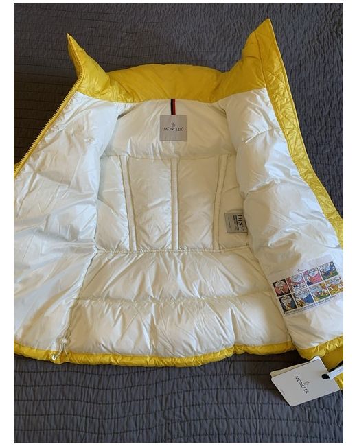 The Douro from Moncler. A current model in stunning yellow. Lots of detail with iconic felt badge to left arm. Fits a size 1 also.