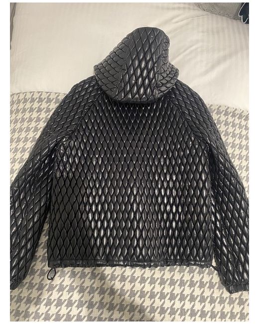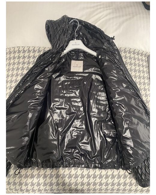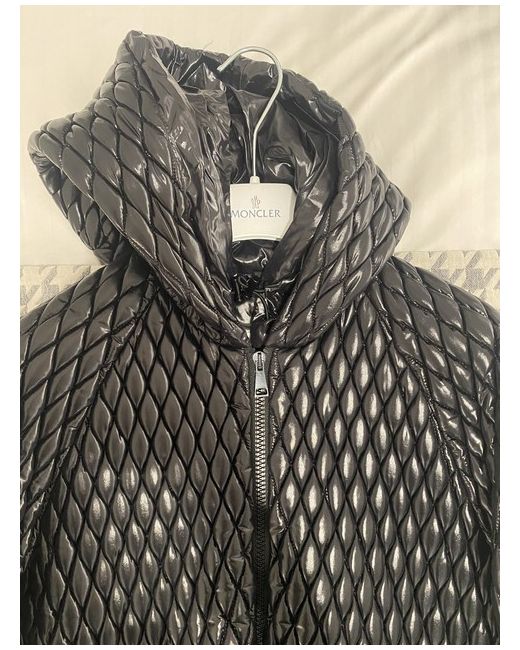 Black Marseillan puffer jacket from MONCLER featuring diamond quilting, drawstring hood, logo patch at the sleeve, front two-way zip fastening, front zip fastening pockets, long sleeves and elasticated cuffs. Brand new item, only worn once. Tags still with item. Paid £930. Size 2 which is the equivalent of a M, however I am a UK 8 and this fits well. Room for a jumper underneath.