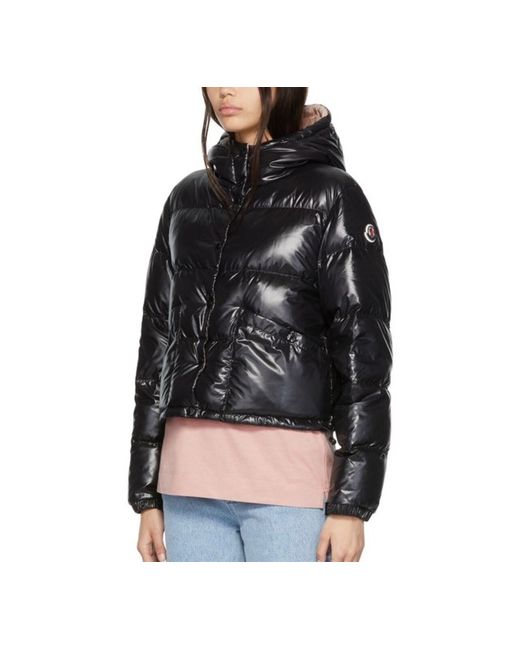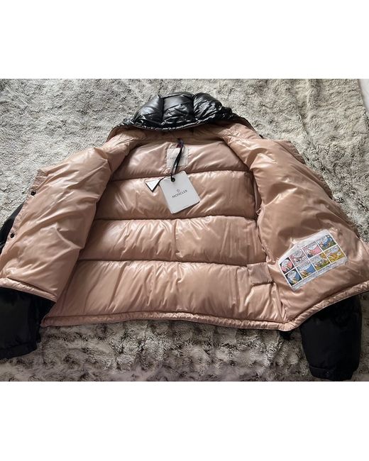 MONCLER Black Bardanette Down Jacket size 5 equivalent to XXL (size run small) ITEM INFO Down-filled quilted nylon taffeta jacket. · Hood at stand collar · Press-stud closure · Patch pockets · Concealed bungee-style drawstring at hem · Signature tricolor felted logo patch at sleeve · Adjustable press-stud tab at elasticized cuffs · Full nylon taffeta lining in pink color: Black Fill: 90% goose down, 10% goose feathers. Body: 100% nylon. Lining: 100% nylon.