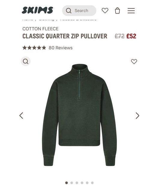 Skims Classic Quarter Zip Pullover in Spruce Size XL New with tags Photos don’t quite capture the colour as it looks in person so I include a screenshot from the website to give a better idea of the colour Any questions please do not hesitate to ask Thanks for looking!