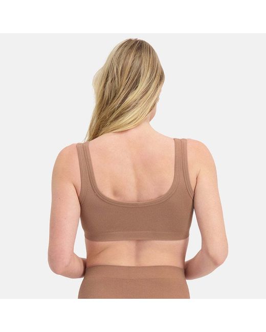 The RUBY seamless rib bra is part of Bambo Basics new line of rib texture underwear. The rib texture provides natural stretch, support and comfort. The RUBY seamless rib bra is available in the colours tan and black.