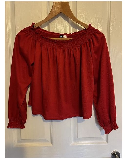 Red Cold Shoulder Off Shower Top H& M Size M Loose Long Sleeve Blouse.