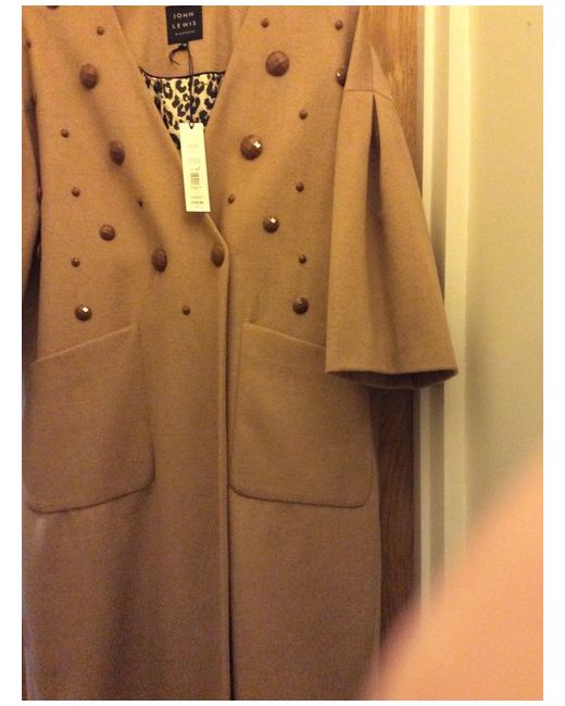 John Lewis Beaded Camel Coat Erica Davies Size Medium. Stunning coat perfect for a special occasion can be dressed up or down though. Animal print lining Perfect for the festive season Pleated detail to shoulder on sleeve Would fit size 16 /18 Brand new labels attached All items are from a pet and smoke free home