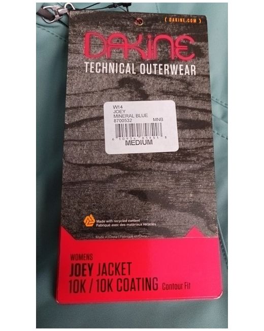 With 10K waterproofing and a DWR finish, you won't have to retreat to the lodge when conditions get a little nasty. Ride on, girl, in the DaKine Joey Jacket. Solvent free DWR finish. Mineral Blue. Lining Material.