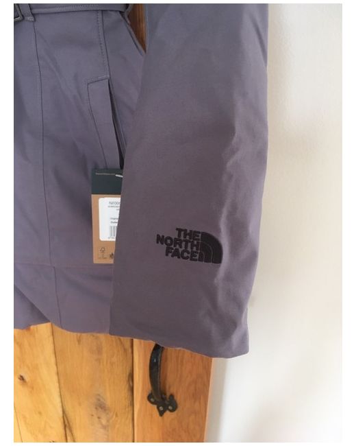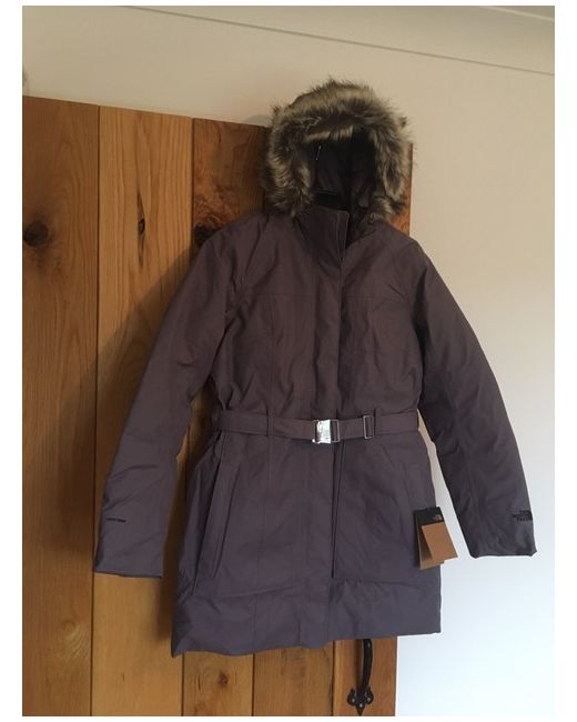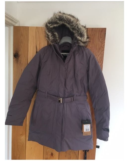 Colour is coastal grey. (does have a hint of purple in the grey)z. North face Brooklyn. Faux fur trim is removable. Beautiful looking coat. Waterproof with dry vent technology. Fill is 80% down and 20% waterfowl.