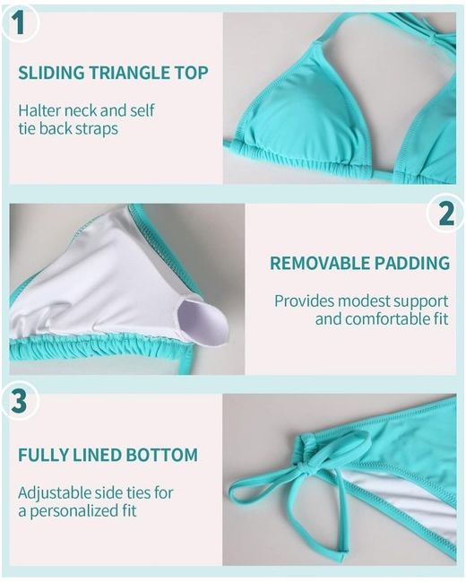 Two piece bikini sets with contrast gradient color, make you a flattering look. Removeable wirefree padded bras for slightly support and shaping. Hand Wash Only. 82% Polyester, 18% Elastane. Product detailsAbout this item.