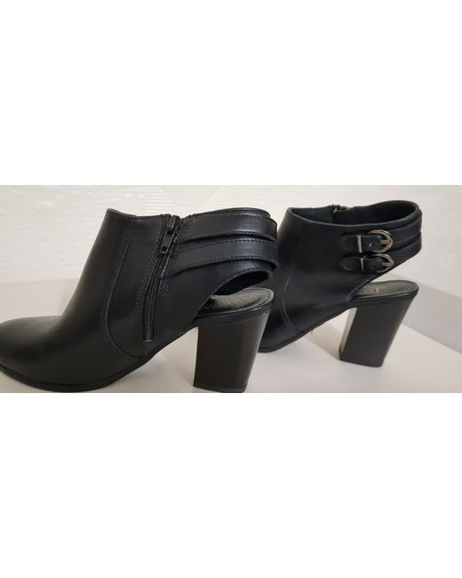 lovely shoes, with buckle and zip feature with open back 7.5cm high Black leather Cross between boot and shoe from pet and smoke free home
