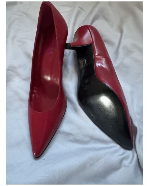 Jones ladies leather court shoes in red. Unworn and boxed