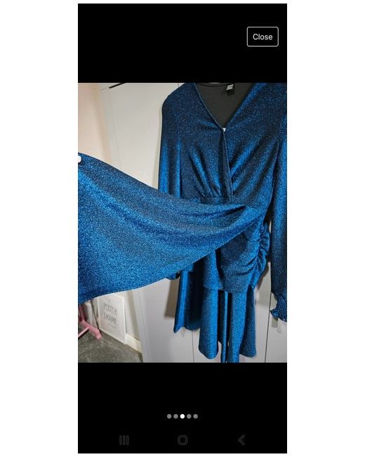 lovely blue sparkly dress size 8 never worn long sleeves has button at top