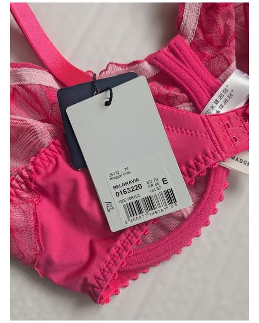 PrimaDonna Belgravia Full Cup Wired Bra in Blogger Pink. Feminine underwire bra made of shimmery voile with stylized embroidered roses. With satin ribbons under the cups and on the straps. The tuxedo bow on the front adds a retro touch. Trendy fluorescent pink: a seductive color that allows your femininity to shine.