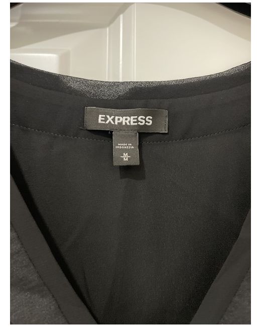 Look effortlessly chic in this Express black blouse for women. The V-neckline and long chiffon sleeves make it a perfect choice for a day at the office or a night out. The blouse is made of polyester and comes in a size M, making it a comfortable and versatile addition to your wardrobe. With its basic style, this top will pair well with any outfit. Whether you dress it up or down, this Express blouse will make you feel confident and put-together. Add it to your collection today!