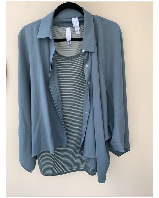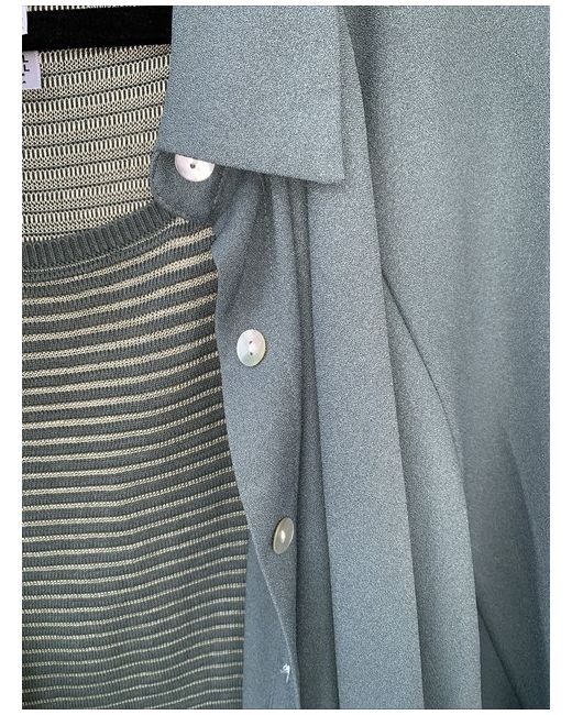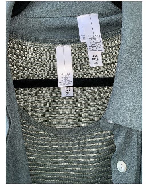 Crafted by Marla Wynne, this slate blue top and blouse set exudes effortless elegance for your casual outings. The ensemble includes a long-sleeved blouse with a sophisticated scoop neck and a sleeveless top, both featuring a classic striped pattern with a contemporary raised stripe accent.