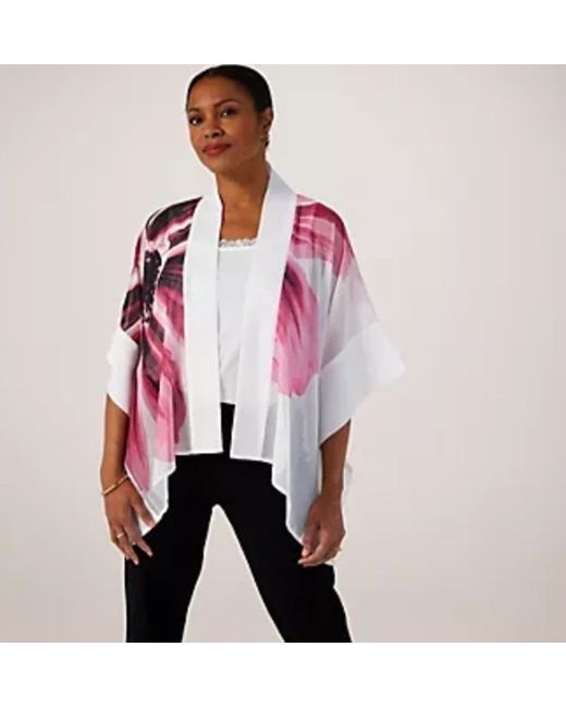 WynneLayers Chiffon Unstructured Border Open Cardigan. Drape yourself in the ethereal elegance of the WynneLayers chiffon unstructured border cardigan, a piece that redefines casual sophistication. Colour: Magenta Floral Print.