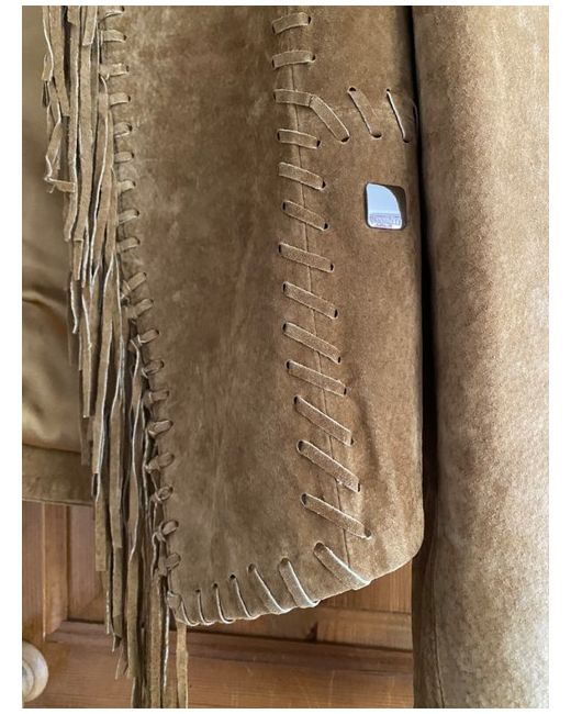 Brand new authentic beige fringed suede jacket with labels still attached. Size 16.