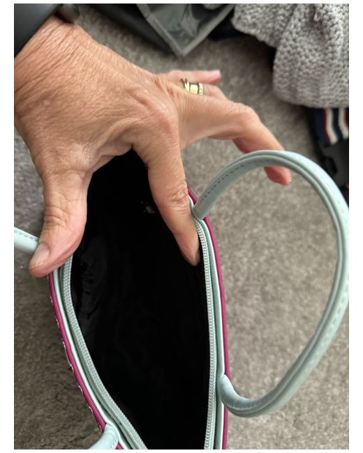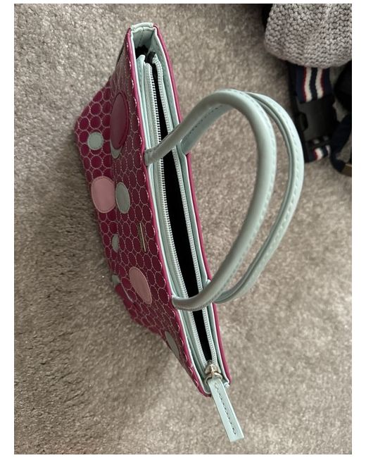 Small Fiorelli handbag in pinks and baby blue circle pattern front and dark pink back. Zip fastening. One zipped pouch and one elasticated pouch inside plus key ring holder. Perfect size for night out, will hold a phone, cash and lipstick easily with room to spare. Smoke and pet free home.