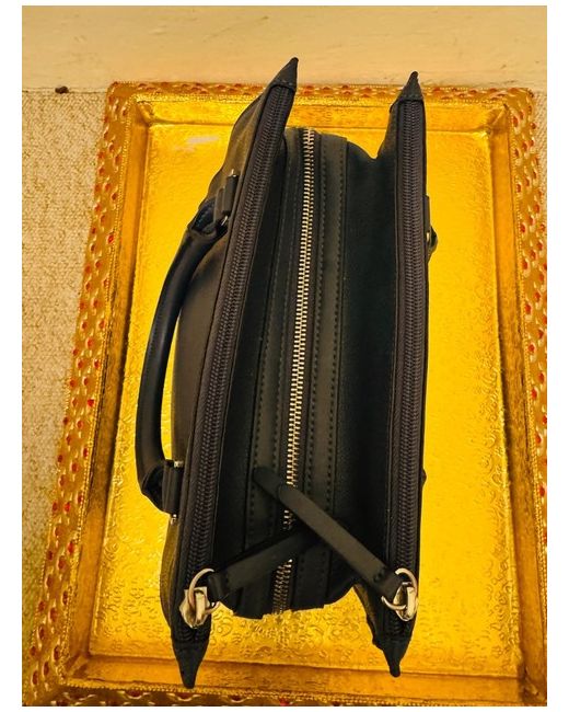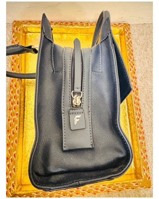 3 main pockets (two slimmer on the sides, one larger in the middle) with a zip compartment inside the larger pocketNavy blue with grained look exteriorMeasurementsLength :25.5 cmHeight :24cm