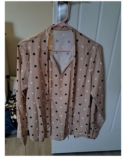 Gold Metallic Jacquard Tie Neck Blouse X-Large