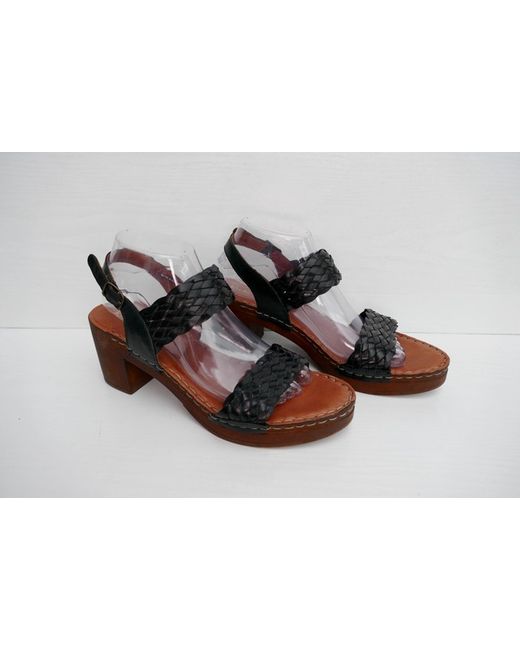NEW KICKERS Black Leather/Leather Lined Plaited Block Heel Ankle Strap Sandals UK 7.5 EU41 US 9. ⢠Cushioning: 100% polyurethane. ⢠Block heel. ⢠Fastening: strap and buckle. ⢠Open toe. ⢠Heel height: 7cm.