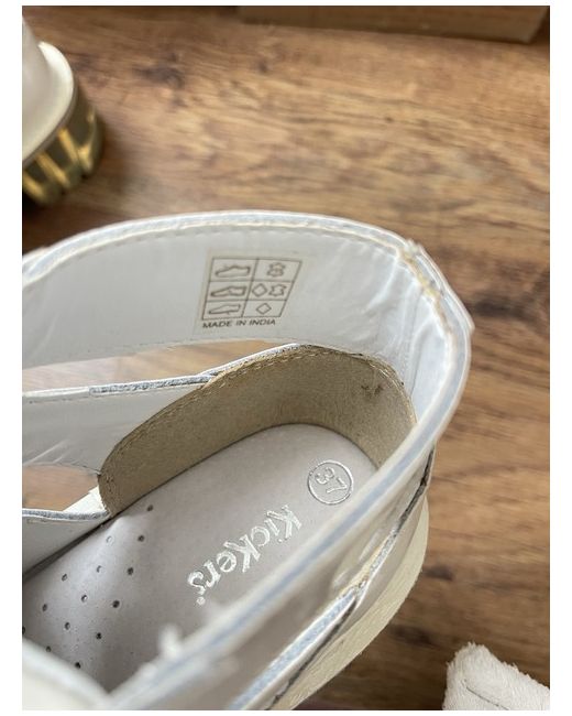 The Kickers Patent Leather Ankle Sandals in White are a stylish and versatile choice for women. Made from high-quality leather with a low heel height, these booties are perfect for any casual or smart-casual outfit. The ankle shaft style adds a modern touch, while the brand's reputation for quality ensures durability and comfort. Perfect for a UK shoe size 4, these sandals are a must-have for any fashion-forward woman's wardrobe. * Minor yellowing on the right shoe (visible in the photo), but still a stylish and well-crafted pair. Priced accordingly for a great deal!