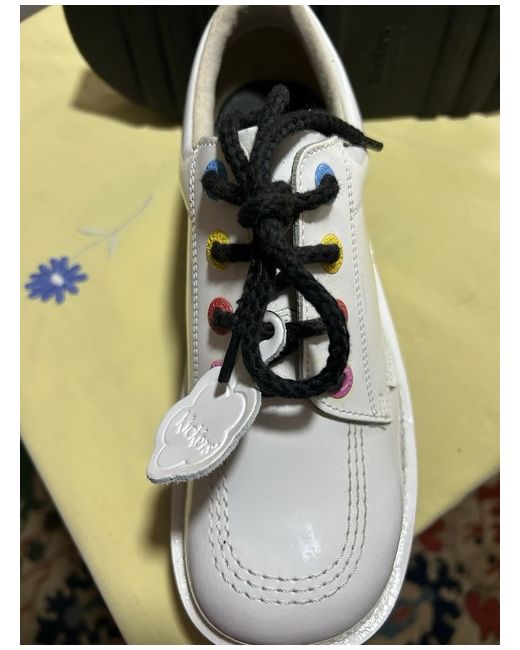 These beautifully made and amusing style called Carnival is a rare find. These Kickers original shoes are in white patent leather with multi coloured lace eyelets which make the shoes smile?? They are fun shoes which give you a bit more height with their more stacked sole. They were bought originally for about £90 as I fell in love with the very different look of them but unfortunately I had a bad outcome during a spinal operation which left me with a “drop foot” so I couldn’t wear them. I tried hard to get my right foot in and even took the insole out but I couldn’t so have dry stored them ever since. They are 100% unworn and just have one defect in that they have an insole missing. They will be bubble wrapped when posted to the new enviable owner. I hope you love them as I do?