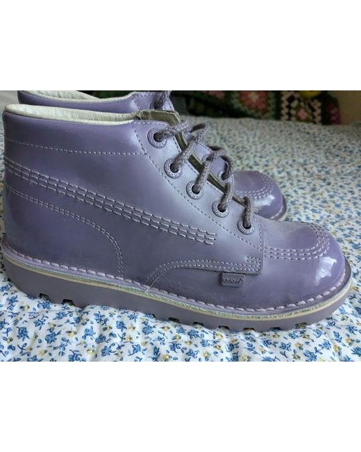 New, unworn Kickers boots in a lilac purple leather upper, and matching coloured soles These were brought in the sale. There is a mark on the sole that looks like the size was written on it. It's underneath though so not noticeable when worn I'm having a clear out and listing things I have not used. pet and smoke free home