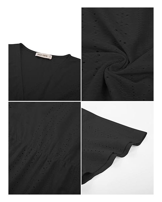 Elevate your wardrobe with this stylish black peplum blouse from Grace Karin. The top features a flattering V-neckline and short casual sleeves, making it perfect for any occasion. Whether you're attending a wedding, going to a party or cocktail event, or just looking for a comfortable yet chic workwear, this blouse is a must-have. Crafted from high-quality polyester material, this tunic-style blouse is not only lightweight but also durable. It comes in a regular size and is suitable for women of all ages. The blouse is available in black, making it easy to pair with any outfit. Don't miss out on this versatile piece that will be a staple in your wardrobe for years to come.