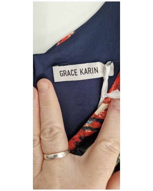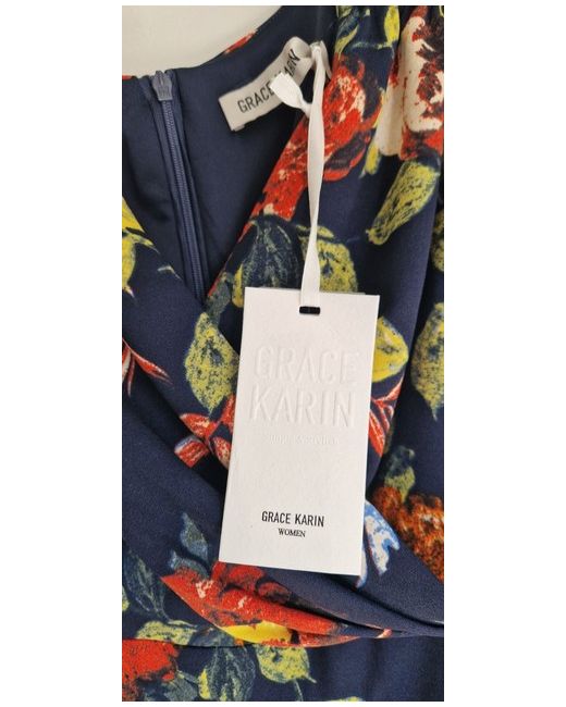 Stunning and Gorgeous Dress in Navy Blue with vibrant colours of White, Orange and Green designed by Grace Karin. New with Tags. This is a Dress to wear to lots of occasions. Beautiful. Cross over Top is very flattering with a lovely waist. Skirt flares to sit perfect. Need to have this x